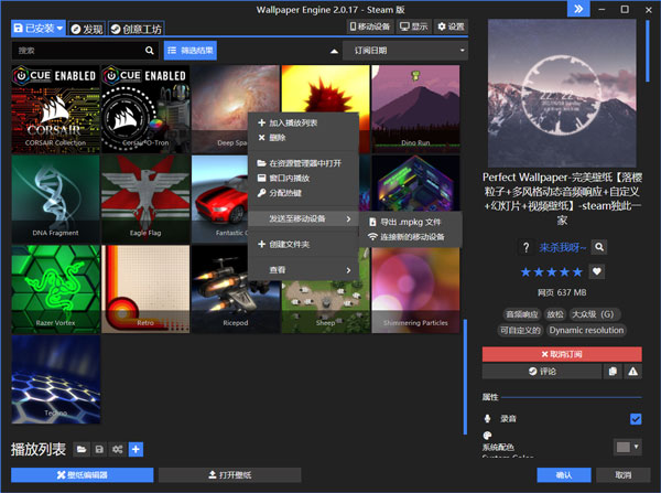 PS:如果您无法连接到 Android:右键单击任何壁纸并选择发送到移动设备,然后选择导出 .mpkg。 然后,您可以通过数据线或其他方式将导出的移动包文件传输到您的移动设备。