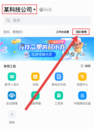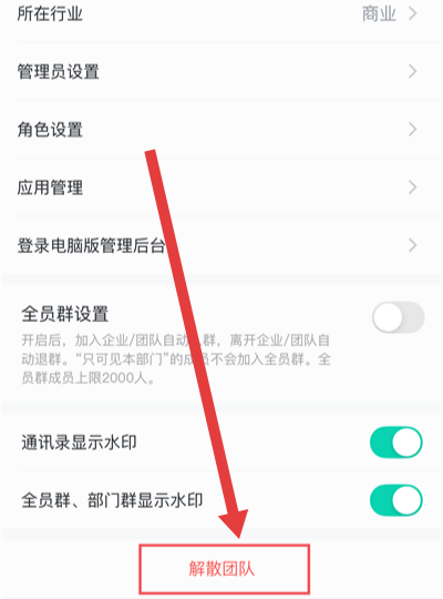 ※团队管理员可以通过手机端移动办公解散团队,点击【工作台】的【团队管理】。