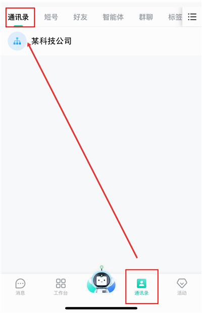 在通讯录中,如果有显示企业团队,表示自己为企业团队成员,反之为个人用户。