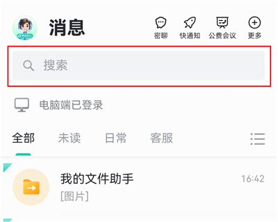 ※先在搜索框中输入聊天记录中无法检索到的内容。