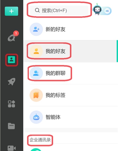 ※通过姓名搜索:只要满足以下任一条件即可搜到:对方在您的“通讯录 > 我的好友”列表中;或者对方在您的“通讯录 > 企业通讯录”中;再或者您与对方存在共同群聊且其在群内的“群聊昵称”设置为该姓名。