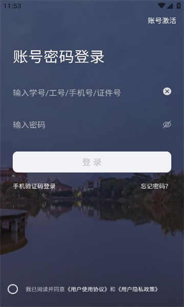 1、在本站下载好i集大app官方版后,打开进入集大统一通行证登录界面,点击“激活账号”。(友情提示:只有本校师生才能登录喔)