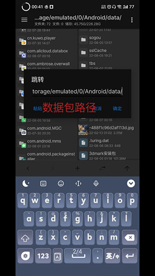 2、把数据包解压到路径/storage/emulated/0/Android/data/里面然后重命名把数据包为com.futuremark.dmandroid.application只下了测试经常用的Wild Life。