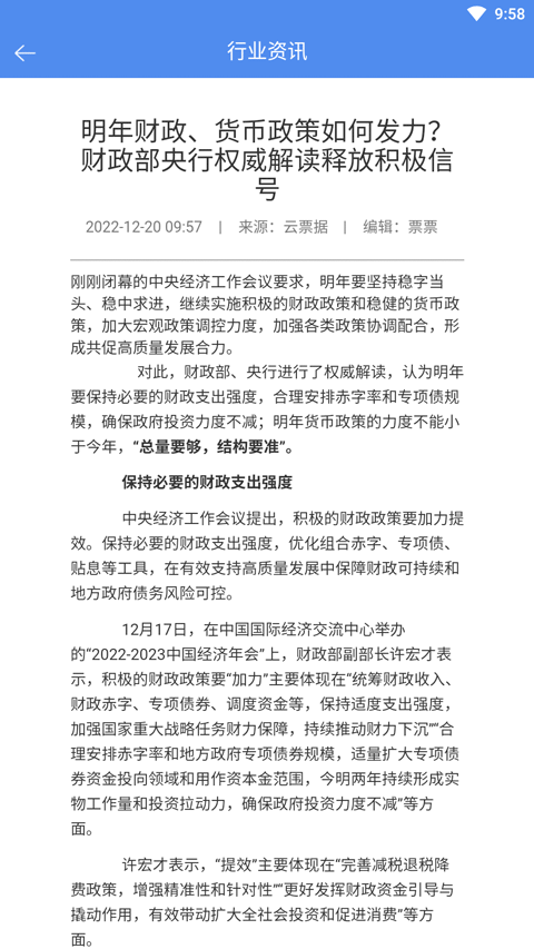 1、打开云票据app,点击行业资讯,用户可以在这里看到很多有关金融行业的资讯信息;
