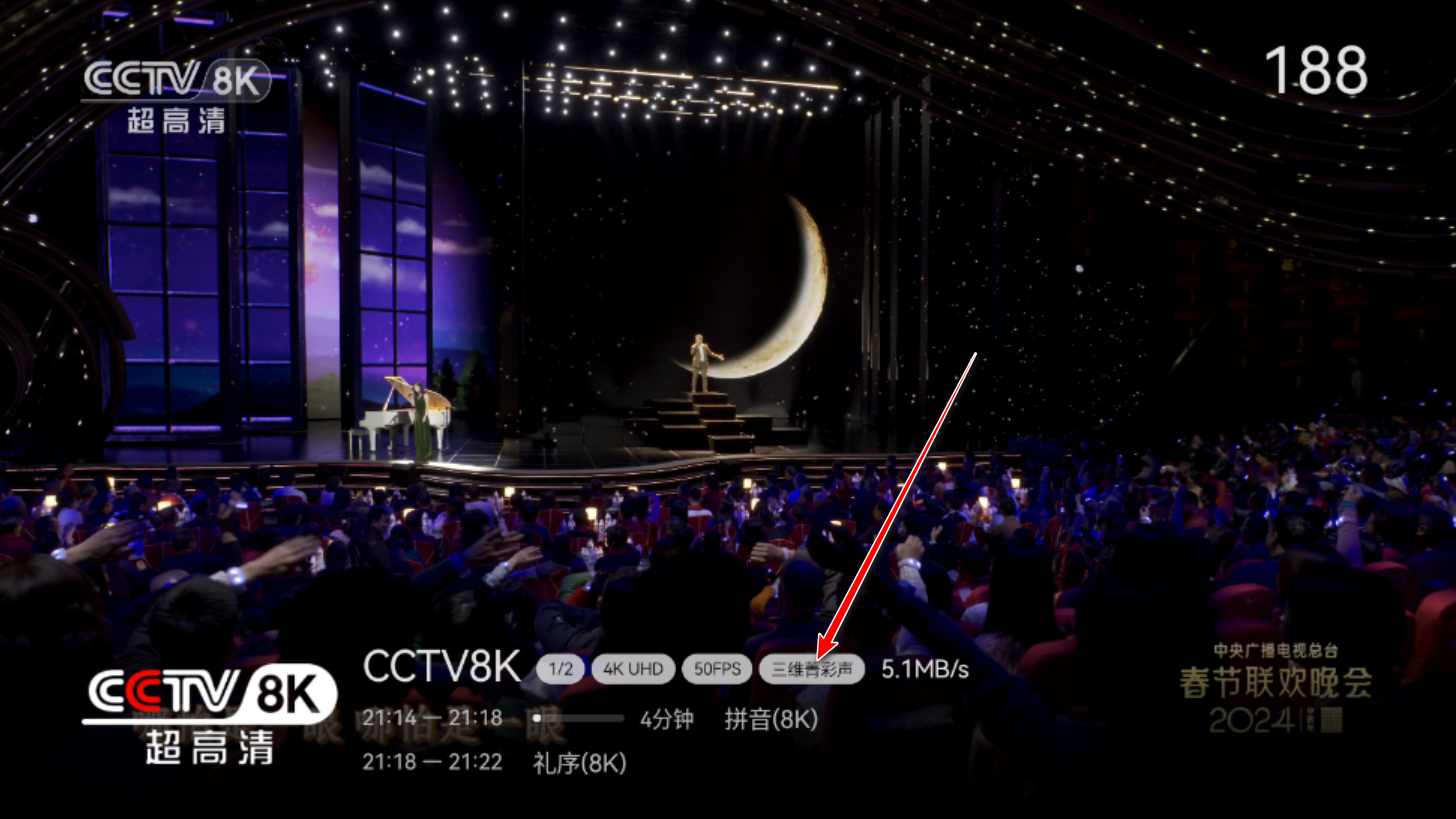 1.如果大家在使用电视家修复版时遇到了4K和8K频道没有声音,是因为采用的是av3a三维菁彩声,我们需要双击屏幕或者按菜单键调出菜单