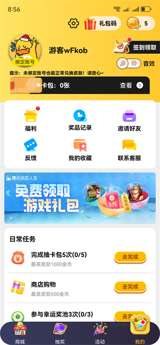 4、在个人中心可以查看日常任务,完成任务可以获得相应的奖励,还有很多福利。
