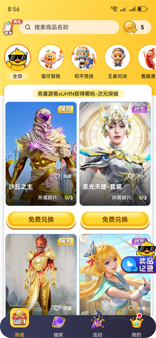 1、提供免费领取皮肤的功能,玩家可以节省金钱,获得心仪的皮肤。