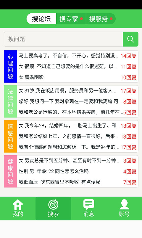 支持心理咨询,情感咨询,法律咨询,健康咨询等