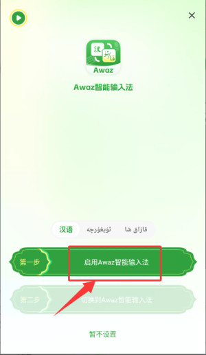 2、点击"启用Awaz智能输入法"按钮,完成功能激活。