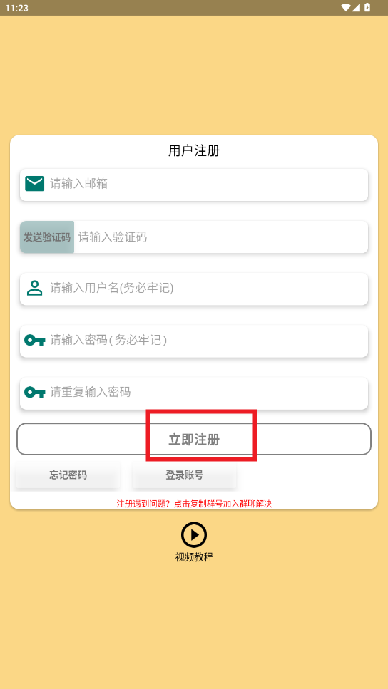 3、重新返回软件,进入登录界面,没有账号的点击注册