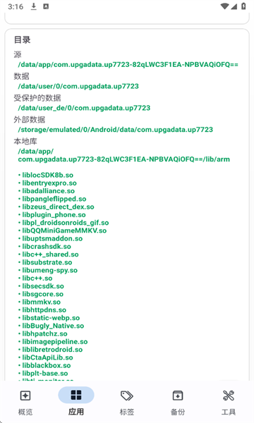 提供手机中各个软件的详细信息,包括版本号、安装日期、权限使用情况、存储占用等,让用户对应用了如指掌。