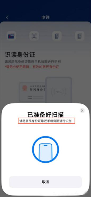 2、然在手机NFC区域识读本人身份证核验身份信息