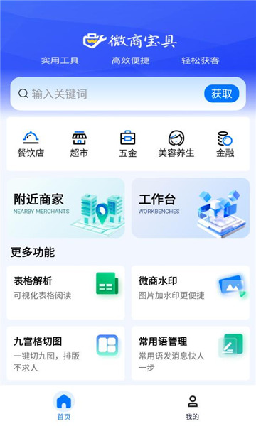 微商宝具app是一款借助大数据技术打造智能营销工具,可以服务销售,微商,批发商等不同群体,实现了精准获客服务,还提供了关键词搜索,帮助用户挖掘潜在客户,进行有效的商业洽谈。