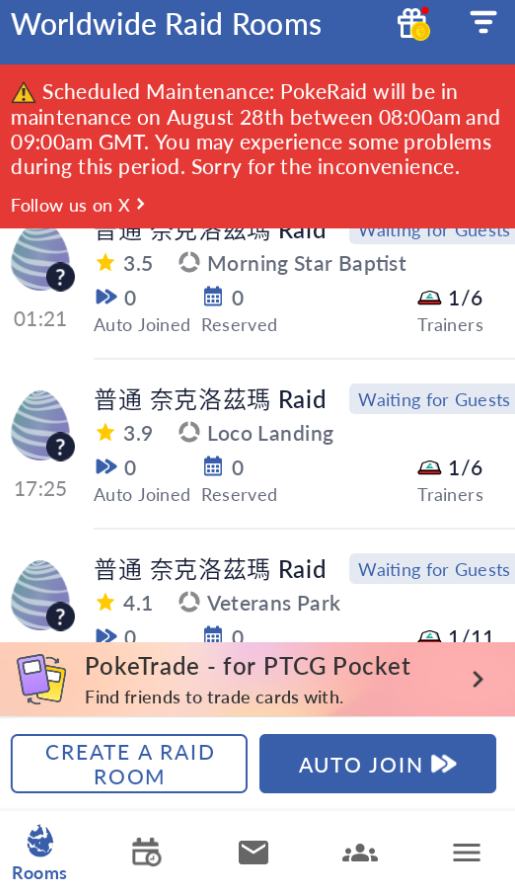 下载进入pokeraid软件,这里有很多的团战可以选择加入