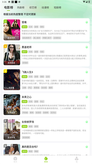 用户友好的界面:软件的界面设计简洁直观,操作流畅,用户能够轻松上手,快速访问各类影视资源,享受便捷的观影过程。