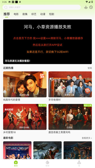 1、进入首页后可以看到各种推荐的影视类型以及分类;