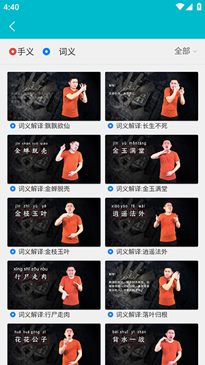 4、点击具体词汇后,软件会播放手语演示视频或图片,帮助用户直观学习。