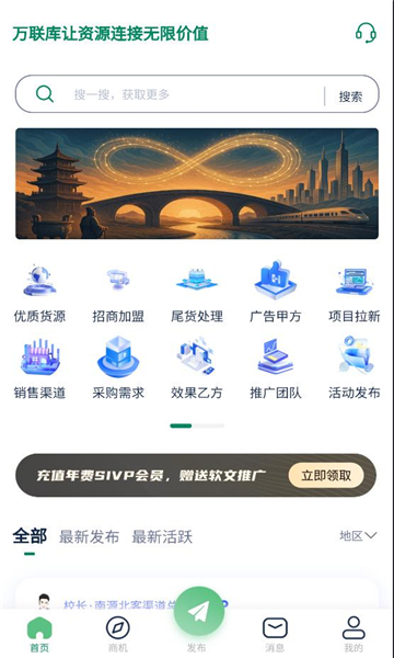 万联库官网下载最新版分享给大家!这是一款可以让你找资源,找人脉,找商家的资源对接平台,既可以服务创业者,也可以为渠道商带来更多机会,支持项目发布,商机共享,沟通协作等一系列内容。