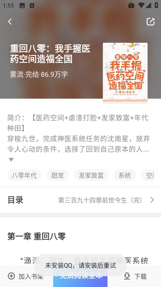 3、接着任意选择一本小说,这里小编以“重回八零”为例。