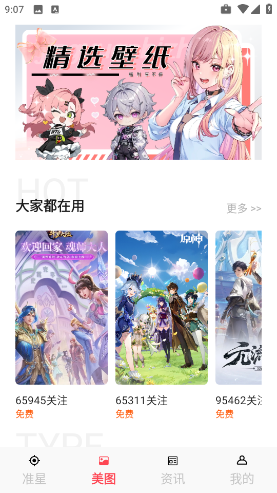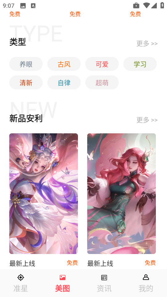 2、接着我们可以看到各种不同类型的游戏美图,如图所示。