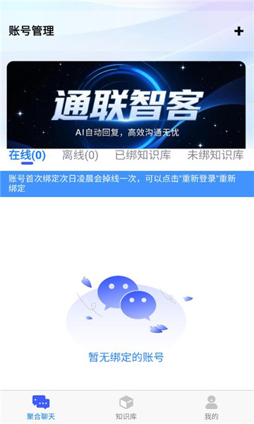通联智客app是一款融入了ai技术的销售助手,不管是线上销售还是线下地推都可以进行高效服务,聚合了账号管理,消息回复,营销推广,数据分析等一系列服务,让获客工作变得简单轻松。
