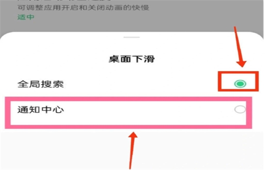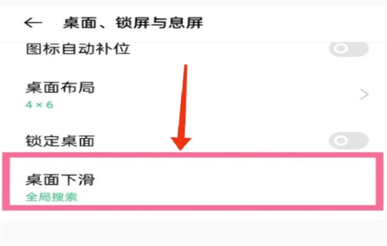 2、到桌面锁屏与息屏页面后,点击【桌面下滑】选项。