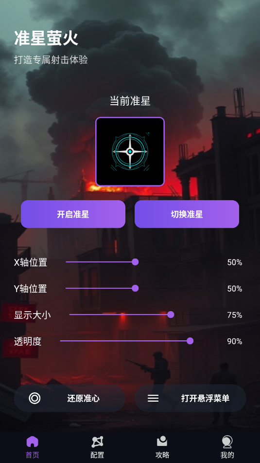 3、 智能隐藏机制,支持设置触发条件(如开镜时自动显现、射击后淡出),让辅助准星既实用又不遮挡视野。