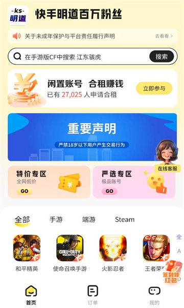 明道租号专注为游戏玩家们提供游戏租号、买号、卖号、账号回收、账号估价等一系列专业游戏服务。目前平台已累计注册用户超千万+,覆盖百余款当下热门手游、端游、steam等全品类游戏。