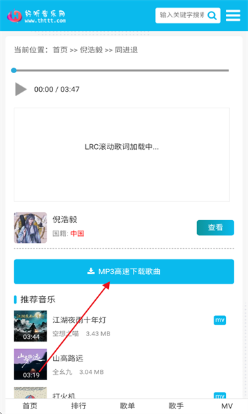 3、点击进入,点击下载歌曲,选择下载方式,等待下载完成即可