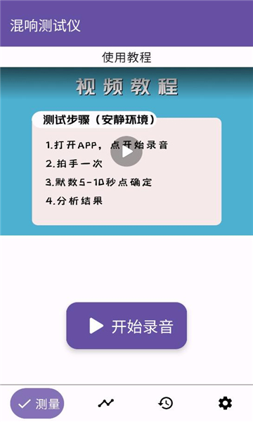 混响测试仪app是一款专为室内测试混响的手机工具,无需其他专业的设备,只需要手机麦克风和听筒能够正常使用即可,操作简单,录制音频上传即可分析测试并得出结果,有需要的快来下载吧。