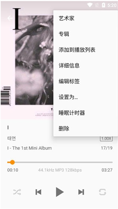 5、点击右上角的按钮可对歌曲进行设置,或进行睡觉计时器;