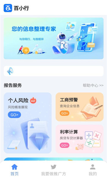百小行app下载安装推荐给大家!这是一款专注于社会民生领域的大数据查询服务平台,不管是企业还是个人都可以使用,涵盖了背景调查,信用评估,风险管控等一系列板块,欢迎前来下载使用。