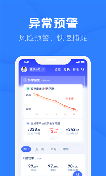 对关键业务指标设定阈值,实现 智能实时预警。
