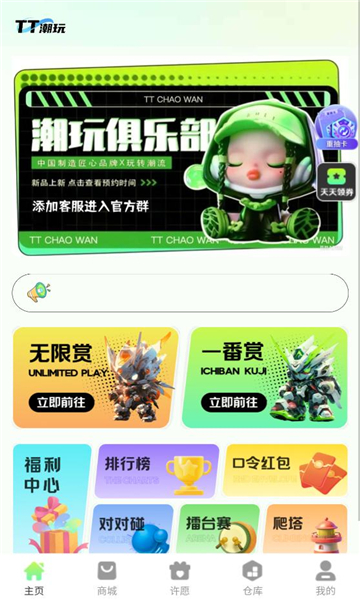 tt潮玩官网下载推荐给大家!这是一款以潮流商品为核心,提供盲盒玩法的电商平台,汇集了数码,手办,周边,动漫,限定等一系列产品,开盲盒即可获取,包邮到家更方便,喜欢的不要错过。