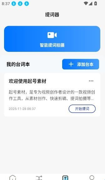 4、进入软件的首页界面后就可在底部菜单栏中点击“提词器”按钮来进行下一步。