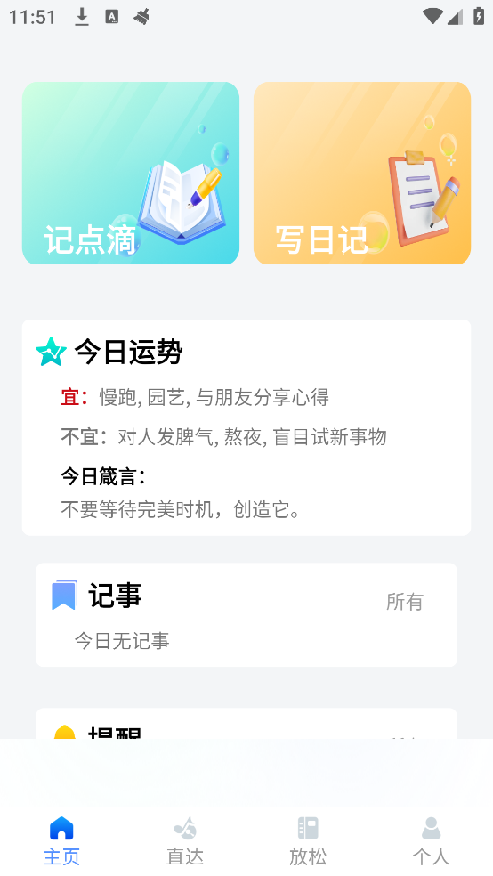 2、进入首页可以看到丰富的功能,点击【记点滴】进入。