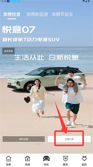 1、启动应用进入车型页面查看后,点击立即订购。