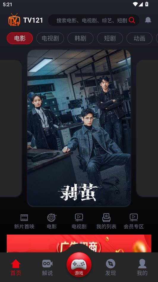 应用启动即进入主界面,全程无开屏广告,提供纯净的观影环境,提升用户体验感。
