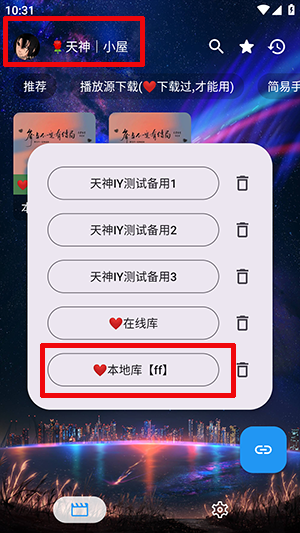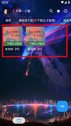 3、点击左上角的影视源,选择本地库,即可重新加载。