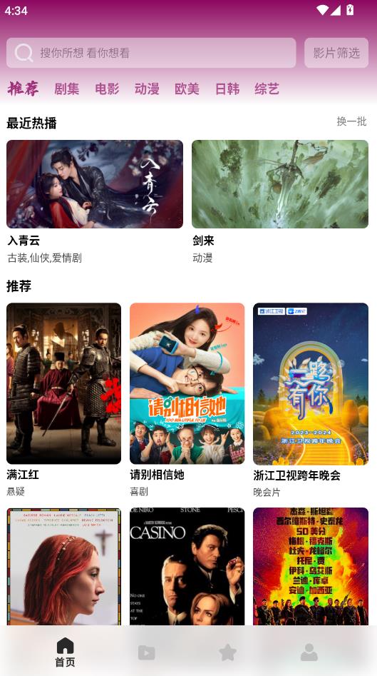 进入首页,这里推荐了超多热门影视。