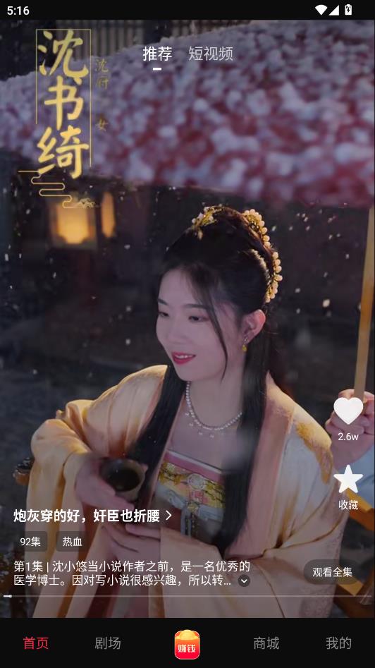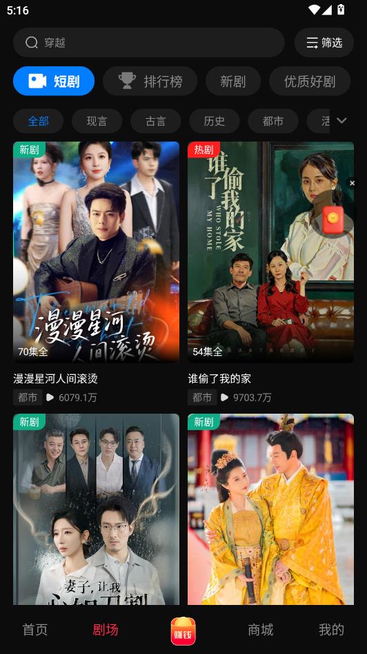 进入首页,这里会推荐最新热门的短剧可以通过滑动切换。