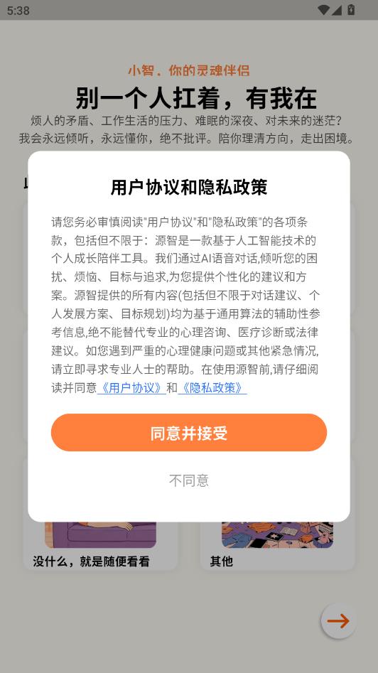 阅读用户协议和隐私政策,点击同意并接受。