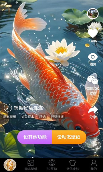 桌面养鱼壁纸app是一款兼具趣味性和实用性的手机壁纸软件,不止有动图养鱼壁纸,还提供了微信皮肤,3D互动壁纸,其他动图壁纸等多个分类,让你可以自由切换不同的壁纸风格,喜欢的不要错过。