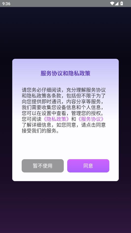 阅读服务协议和隐私政策,点击同意。