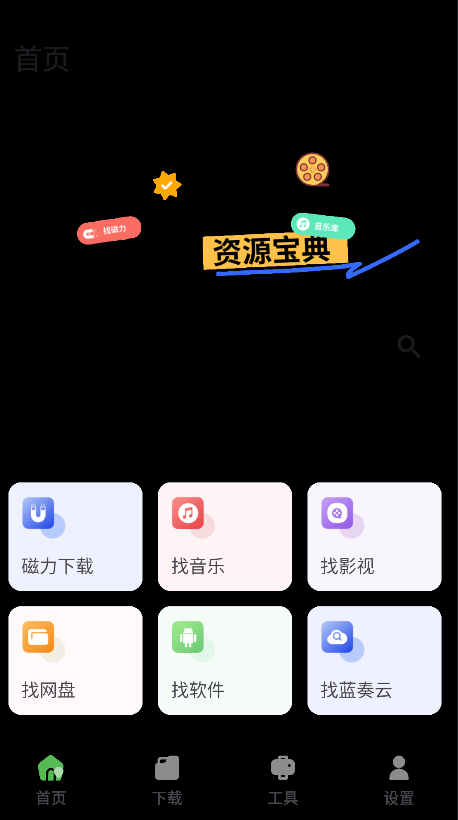 1.打开资源宝典,可以看到首页有很多的功能,大家可以任意点击使用。
