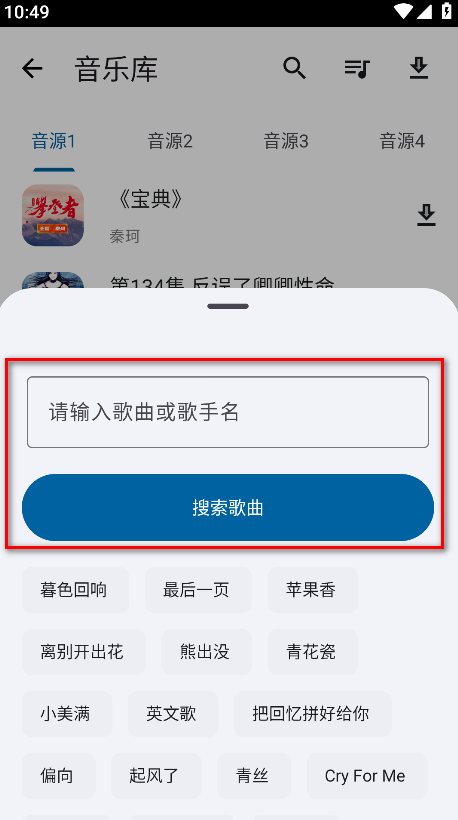 5.输入歌曲或歌手名字,然后点击搜索歌曲。