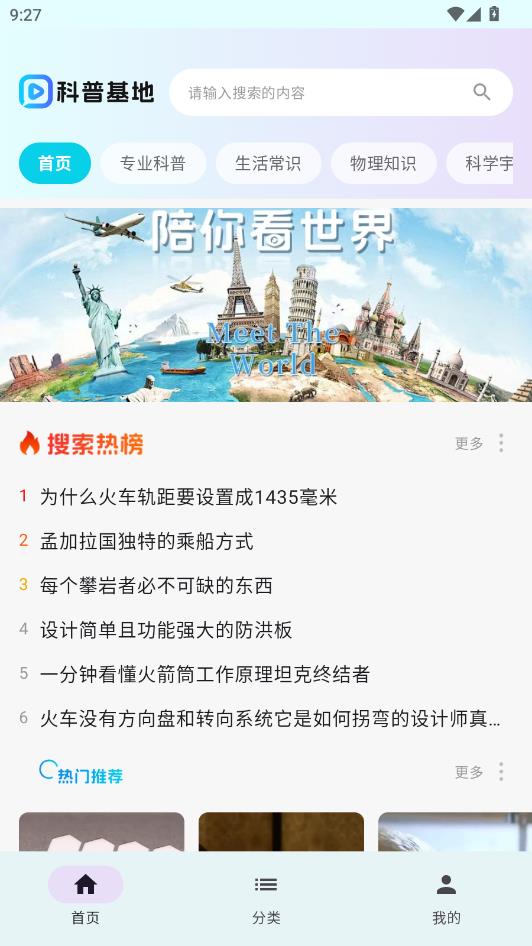 科普基地app是款专注于优质科普内容的短视频平台,其涵盖了多个行业的内容视频,可以根据需求快速查询内容,所有视频内容完全免费,无需会员,让每位用户都能轻松回去科学知识。