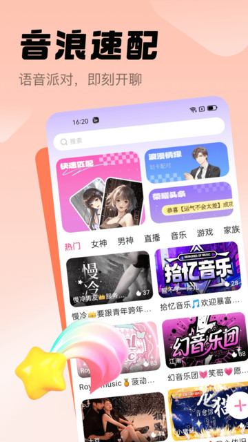 【语音派对】多人在线实时聊天,组队,连麦,匹配,你想要的这儿都有,一时喜欢不如相互陪伴!