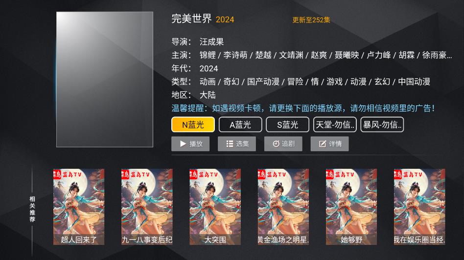通过分类等功能快速筛选喜欢的资源,进入详情页面,点击播放即可。