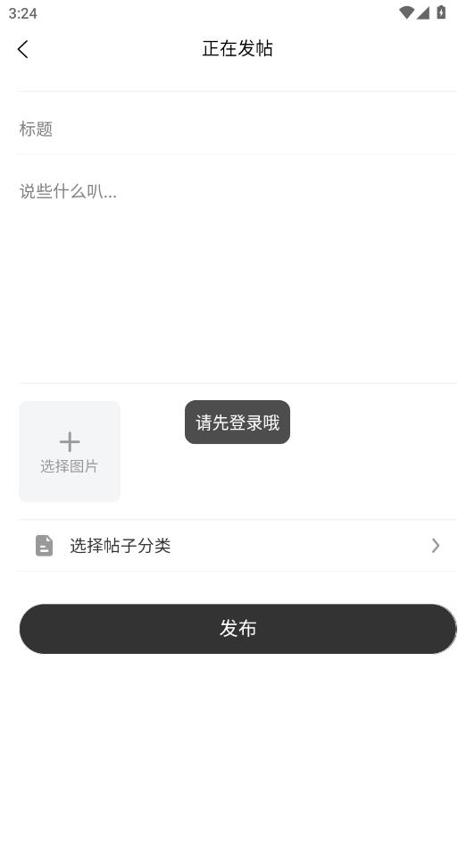 会出现上图情况,需要先完成登录后才能发布内容。
